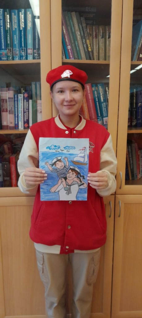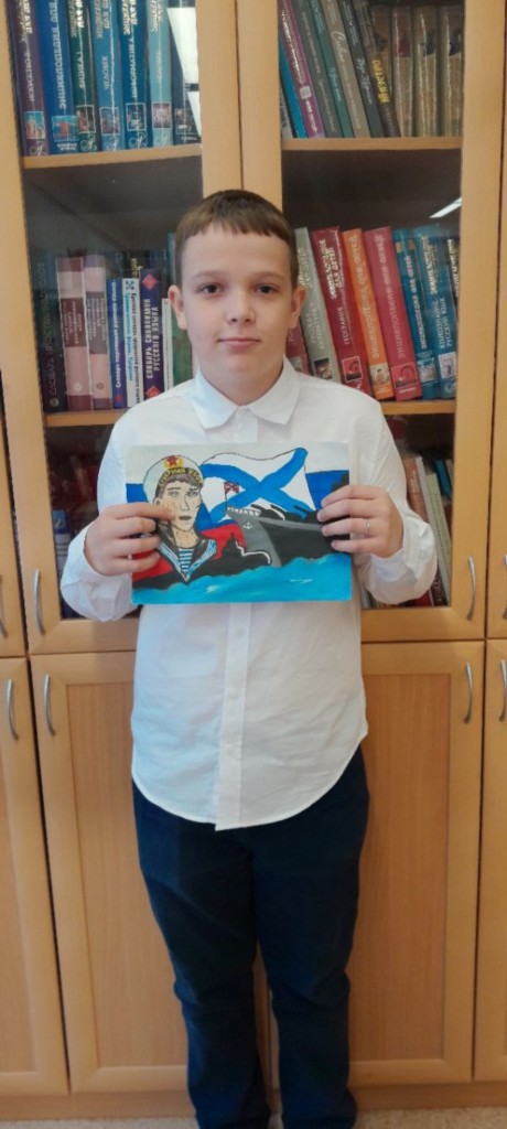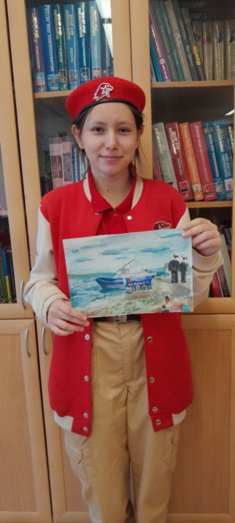 08.09.2025г. Юнармейцы 8 класса принимают участие в городском конкурсе детских рисунков " С Днем Рождения Пограничный Сторожевой Корабль "Чебоксары".
