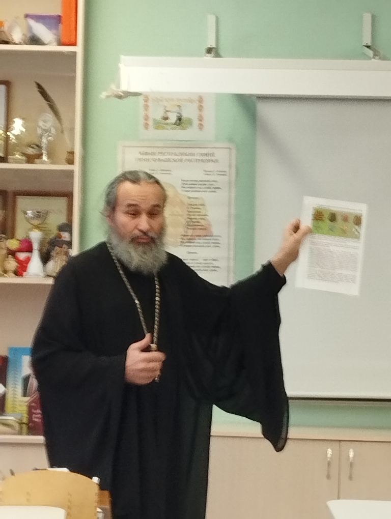 Сегодня,9 декабря-День Героев Отечества. Настоятель храма в честь Рождества Пророка, Предтечи и Крестителя Господня Иоанна г. Чебоксары, председатель Епархиального отдела по взаимодействию с вооруженными силами и правоохранительными учреждениями, протоиерей Пётр Фёдоров провел беседу с обучающимися 8В класса МБОУ "СОШ 19"г Чебоксары о Героях России. Подробно остановился на истории нашей страны.Ребята узнали много нового: какие высшие награды были учреждены в Российской империи и какие награды существуют в современное время. Диалог получился продуктивным и познавательным.