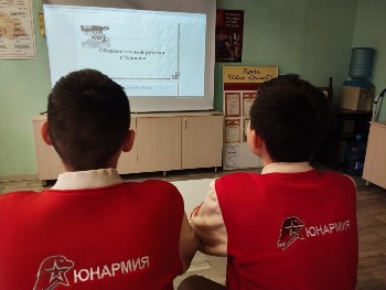 25.09.2025г. юнармейцы СОШ19 посетили штаб общественной поддержки Единой России и посмотрели Всероссийский видеожурнал «Эпоха Героев».