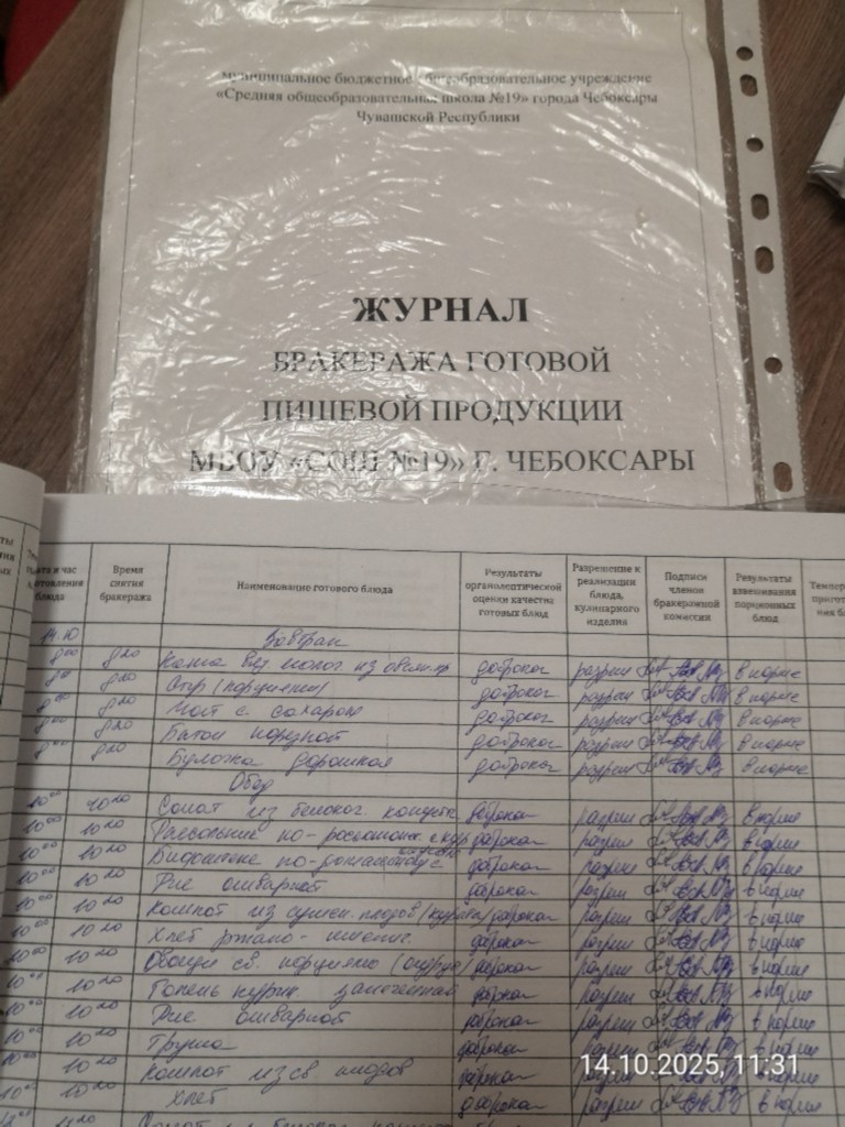 Наличие записей в бракеражном журнале готовых блюд