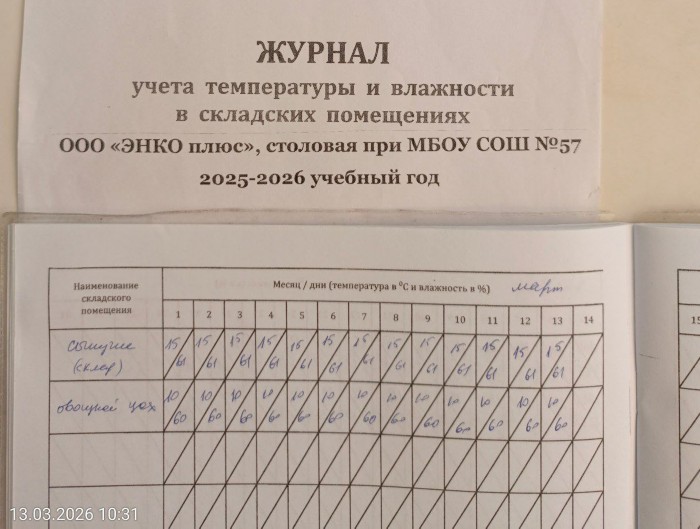 Журнал учета температуры и влажности в складских помещениях