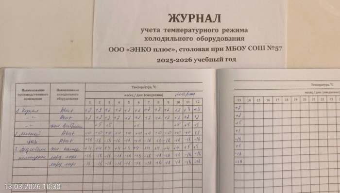Журнал учета температурного режима холодильного оборудования