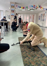 Юнармейцы состязались в строевой подготовке, стрельбе из пневматической винтовки, разборке – сборке автомата Калашникова, снаряжении магазина АКМ, подтягивании, одевании общевойскового защитного комплекта, определили сильнейших в теоретическом конкурсе, а также в конкурсе чтецов «Мы о войне стихами говорим…».