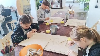 Ребята с интересом познакомились со студией и узнали, что такое лепка за гончарным кругом. Получилось настоящее погружение в мир творчества!
