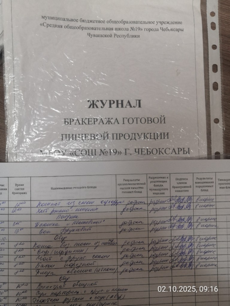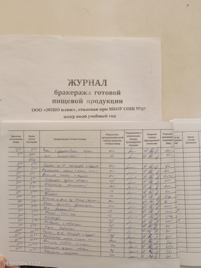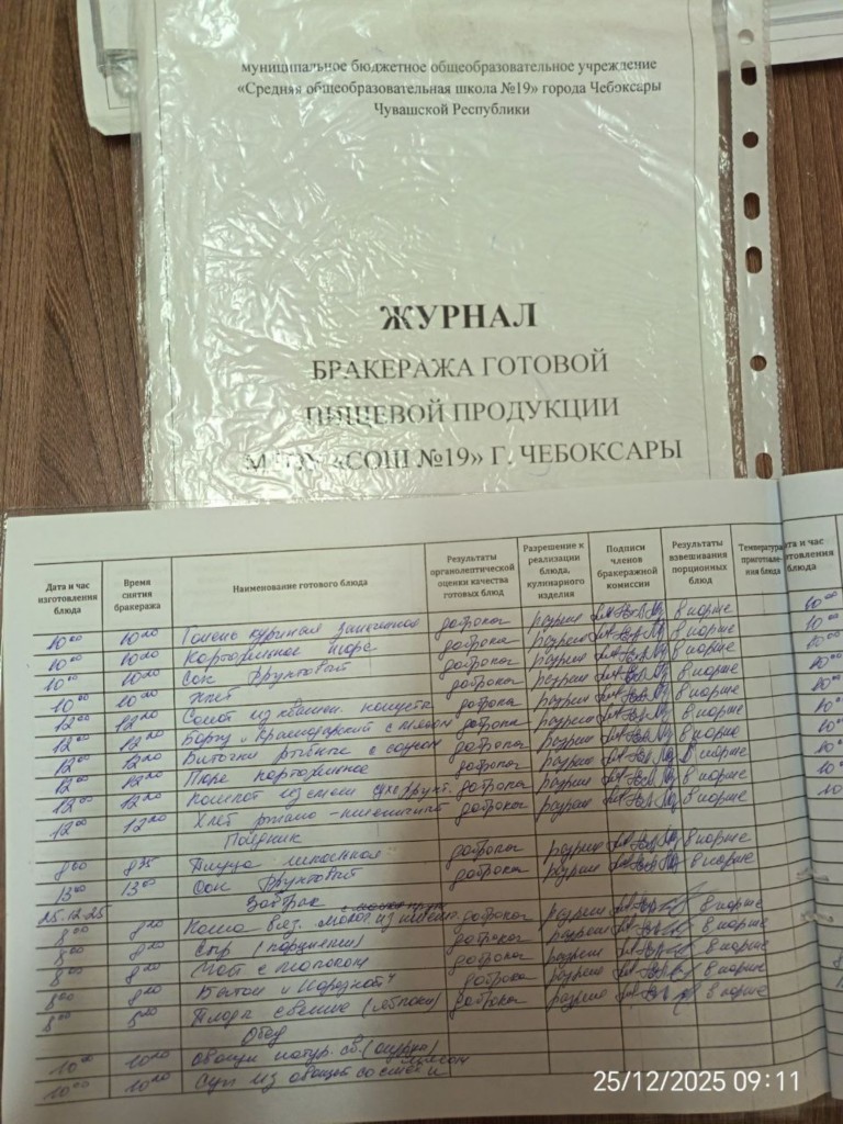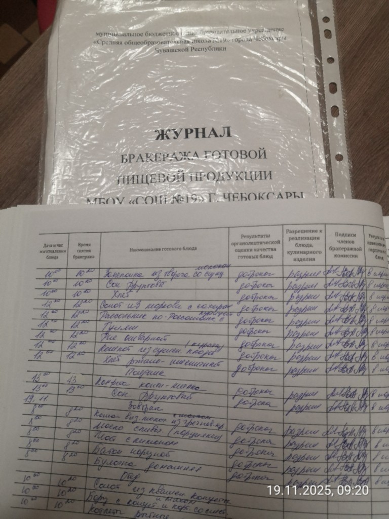 Наличие записей в бракеражном журнале готовых блюд