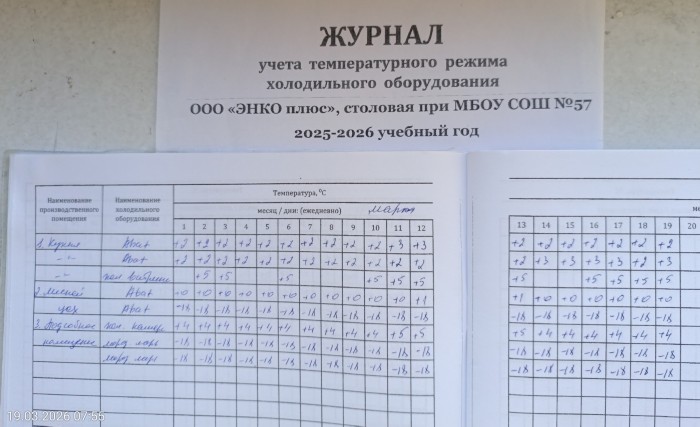 Журнал учета температурного режима холодильного оборудования