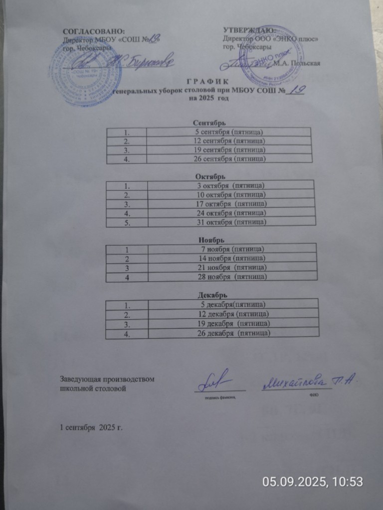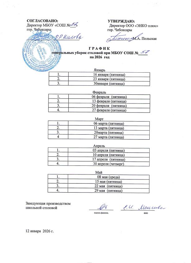 График проведения генеральных уборок
