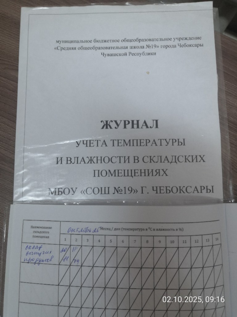 Журнал учета температуры и влажности в складских помещениях