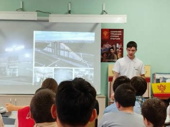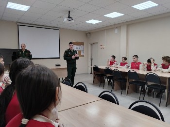 26.11.2025г. В рамках профориентационных мероприятий в юнармейских 8-х классах состоялась беседа с представителями Саратовского высшего военного инженерного училища радиационной, химической и биологической защиты имени Героя РФ, Героя Труда РФ генерал-лейтенанта И. А. Кириллова. Ребята узнали массу полезной информации для будущего профессионального определения.