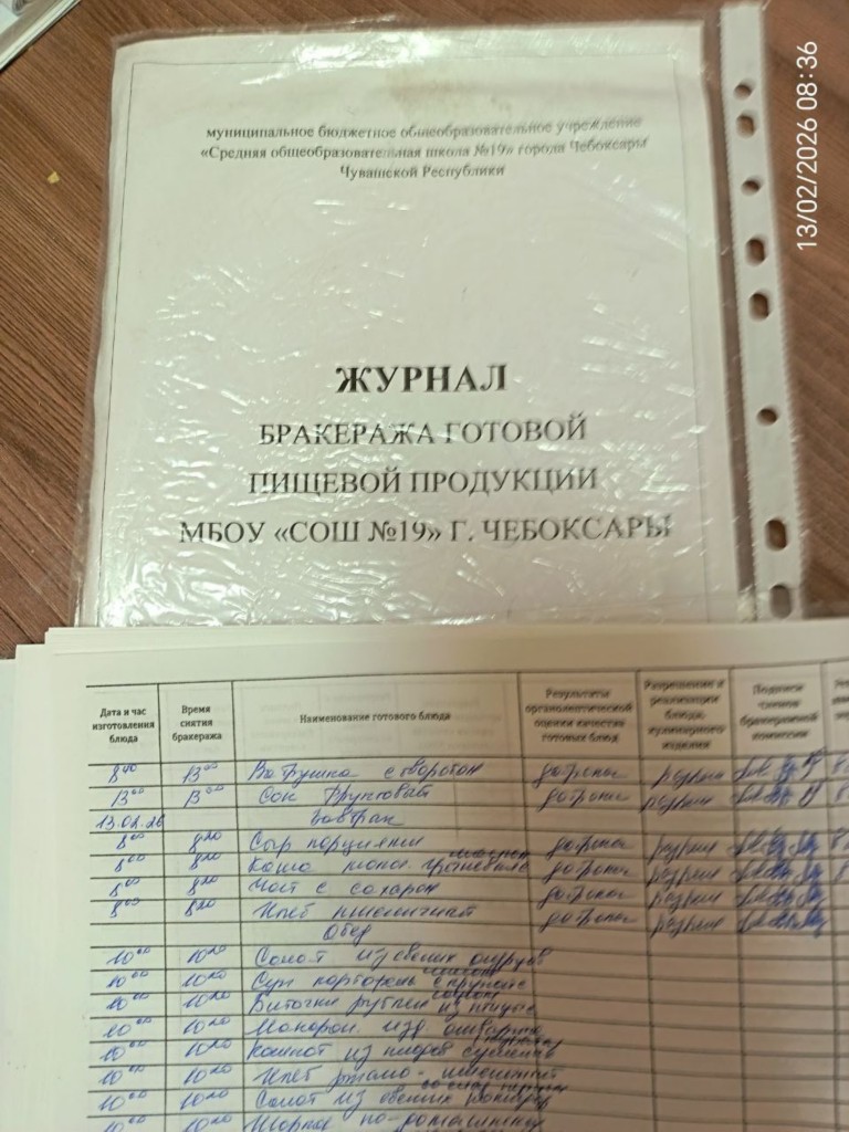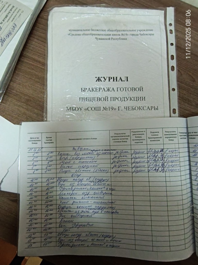 Наличие записей в бракеражном журнале готовых блюд